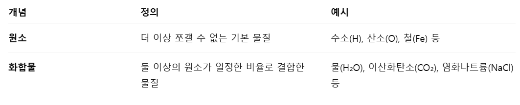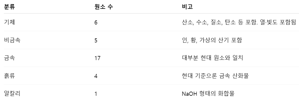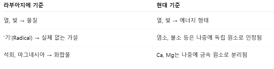 📌 주의: 당시 개념과 현대 원소 개념의 차이점