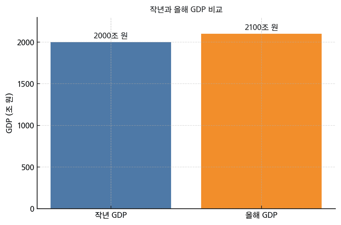 성장률(%) = [(올해 GDP - 작년 GDP) ÷ 작년 GDP] × 100