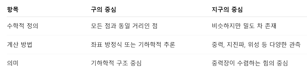 🔄 구의 중심 vs 지구의 중심