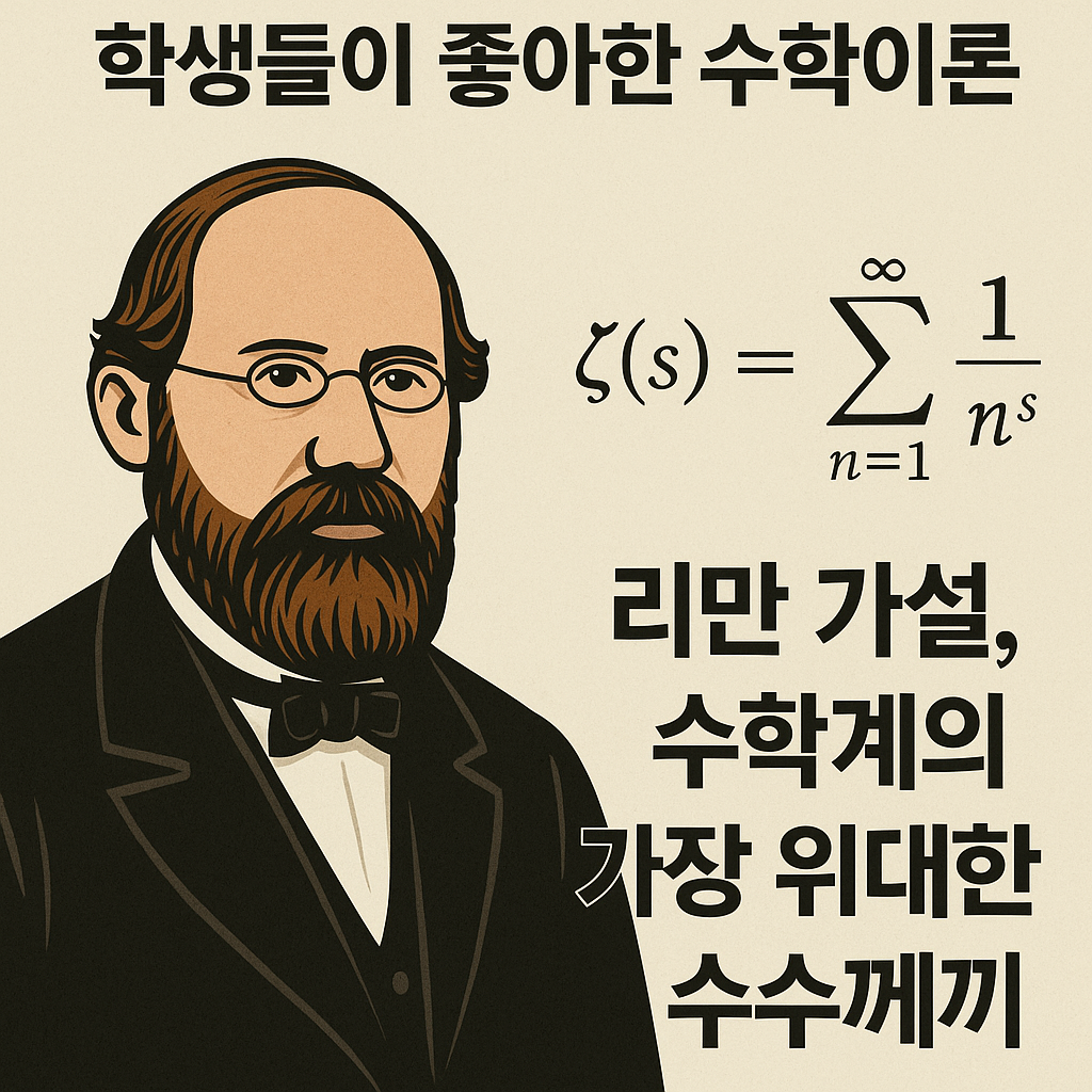 “리만 제타 함수 ζ(s)의 비자명한 영점은 모두 실수부가 1/2인 직선 위에 존재한다.”