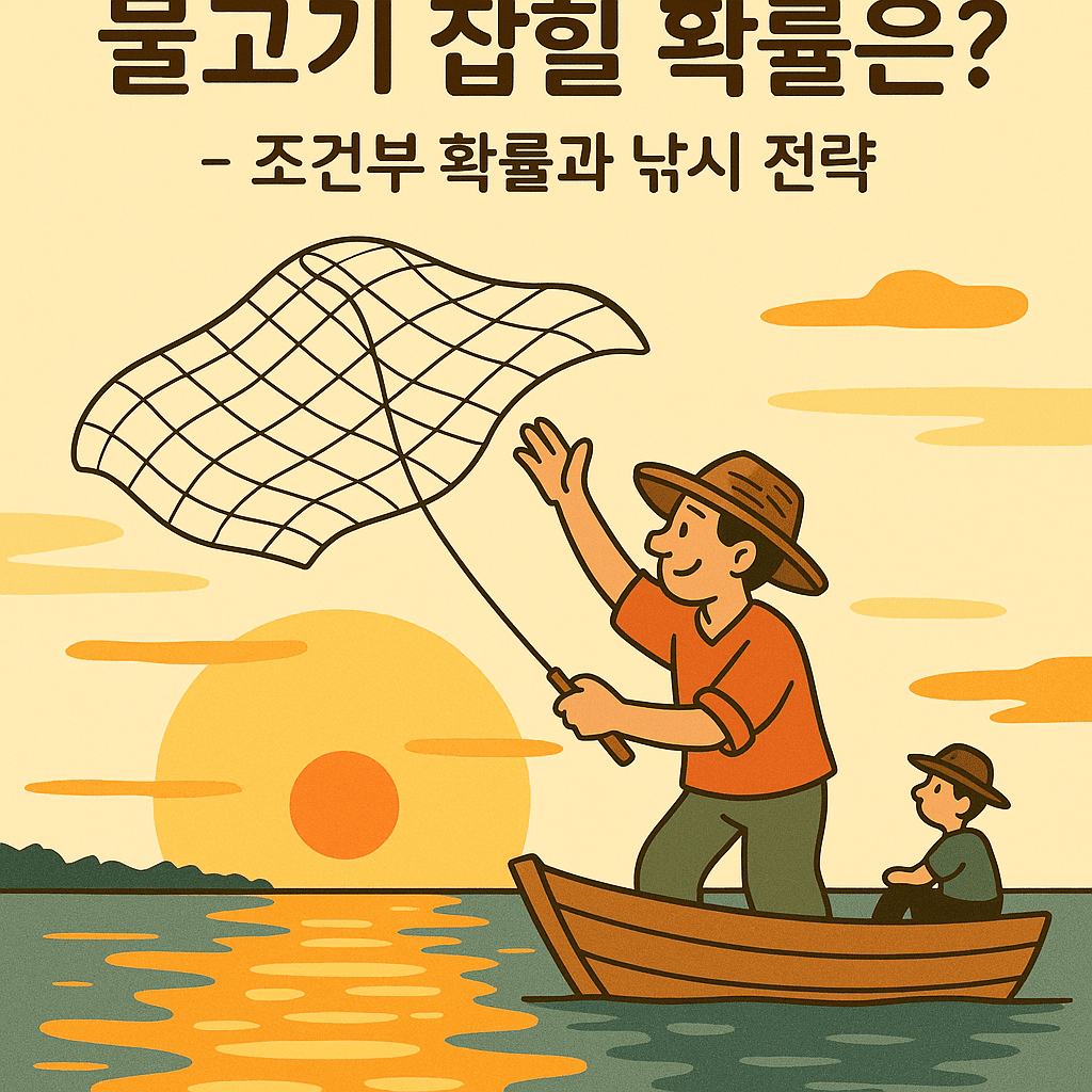 낚시할 때 물고기가 잡힐 확률은 단순한 운일까? 조건부 확률로 낚시 전략을 수학적으로 풀어보는 생활 속 수학 이야기, 낚싯대 시리즈 4편입니다.